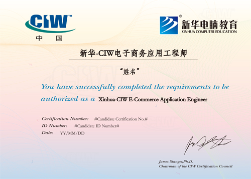 通过国际电子商务认证考核的学员将获得由中国电子商务协会颁发相应的国际电子商务认证证书。证书受到中国电子商务协会上千家企业会员机构的认可。