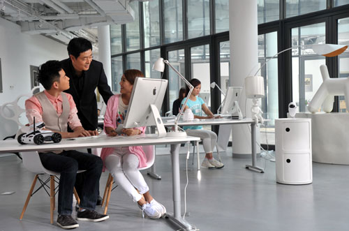 同时,为提高学生实际动手能力,毕业即能上岗就业,四川新华电脑学院巨资打造了E-BOSS创业中心,采用理实一体化教学,打破了传统的“填鸭式”教学模式,让学生在实际操练中轻松学习。E-BOSS创业中心拥有完全独立的工作环境,企业化操作模式,学生实训、业绩考核完全按照企业项目管理模式运行。每个学生都有自己的网站、自己的网店,在日常学习中,根据行业特点采用专业分组模式学习。
