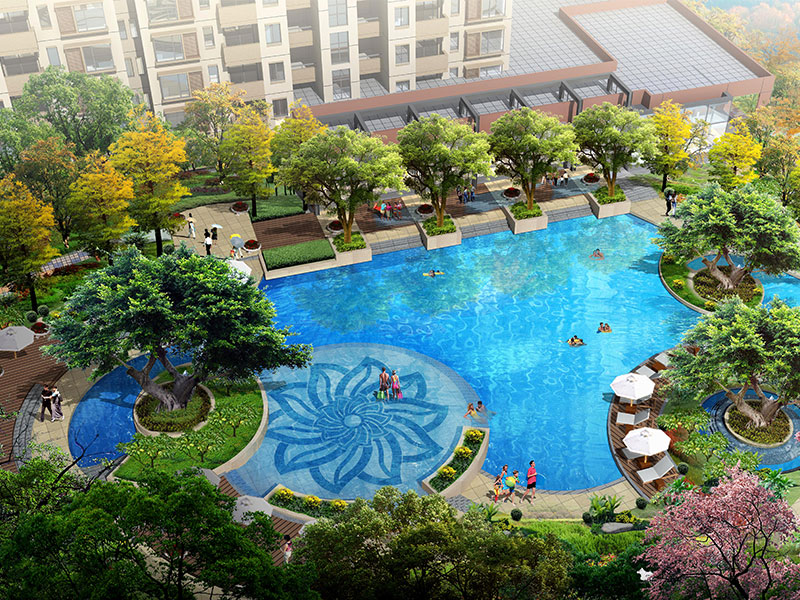 作品简介:椭圆形花园式泳池设计,配上周围相得益彰的树木展示出别具一格的美。泳池周围的圆形花园别有心思,打破了传统的矩形泳池样式。