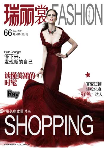 作品名称:《瑞丽裳》杂志封面设计 学生名字:许燕梅 学生专业:艺术设计 学校班级:11艺术2班 家庭地址:四川省宜宾市 作品简介:《瑞丽裳》杂志封面设计,杂志元素运用适当,画面用大气的美女模特儿为背景人物、封底采用简单的白色,让整个画面显得干净、简洁、大气,封面标题用不同字体和色彩来区分,让读者一目了然。