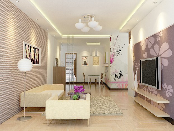 作为与餐厅连通的客厅,是主人休闭娱乐的最佳空间,用局部天花造型配以大胆新颖的电视背景墙造型,使黑白色调当中蕴含着立体效果,从而节省出了更多的使用空间,特别是实木线条漆白所传达出的方圆背景,表达出了主人与众不同的品味需求。
