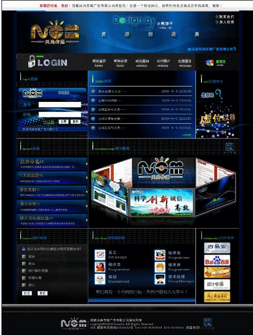 该网站以蓝色水晶风格为主,用以较炫丽的图片,主要加强视觉效果,给人冷酷的感觉,同时带来较强视觉冲击,主题是为了宣传公司理念,展示公司文化。