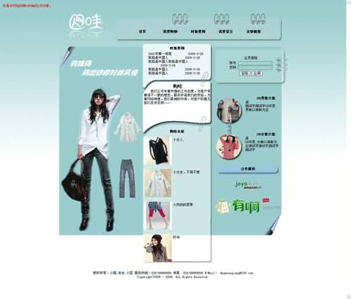 该网站为服装购物网,以简约时尚的风格吸引用户,网站搭配精美的服装照片,吸引用户的眼球。