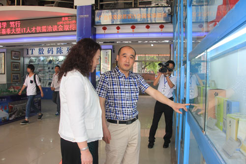 在参观学校平面实训室、三维项目实训室、E-BOSS创业中心、软件实训室等实训室时,张主任对我校完善的实训设备表示了充分的肯定。她说,理实一体化教学让学生能直观地掌握技能,学生只有真正学到技能,才能找到好工作。学校为各专业配备了功能齐全的实训室,让学生有更多的动手操作机会,使学生一毕业即能走上工作岗位。