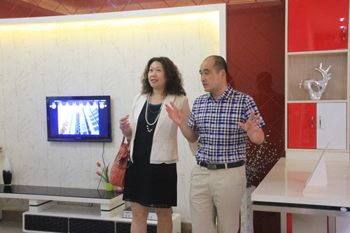 刘校长为张主任介绍我校三维实训样板间