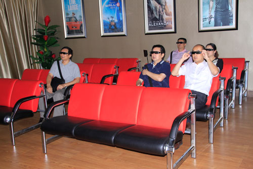 余校长带上3D眼镜,亲身体验我校3D放映室的震撼视听