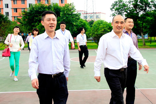 刘校长及各位校领导陪同人社局兰琦主任(左一)参观校园