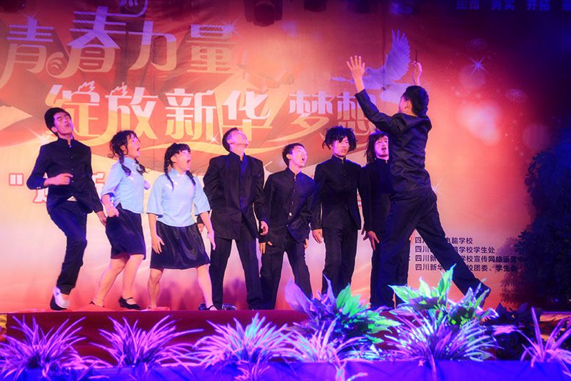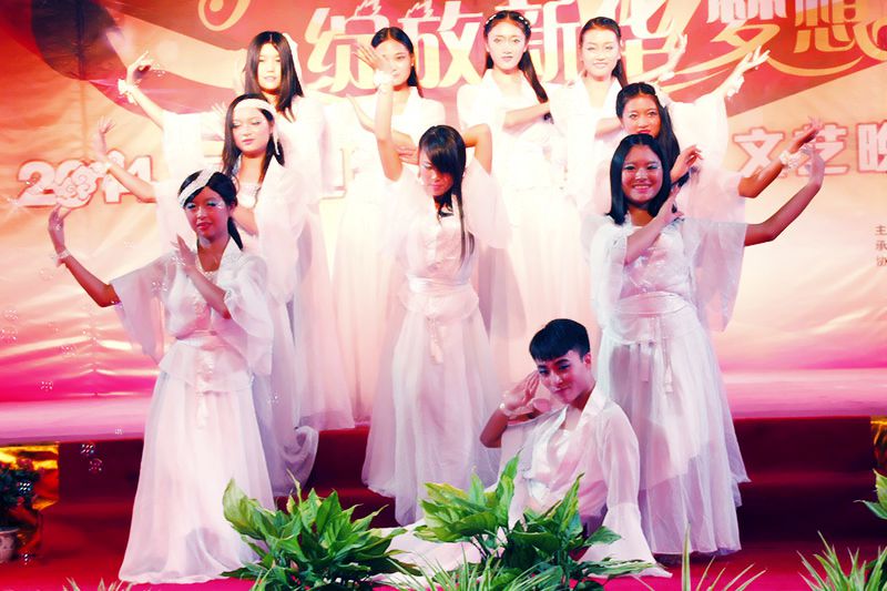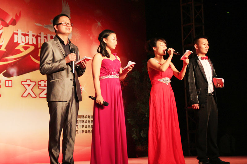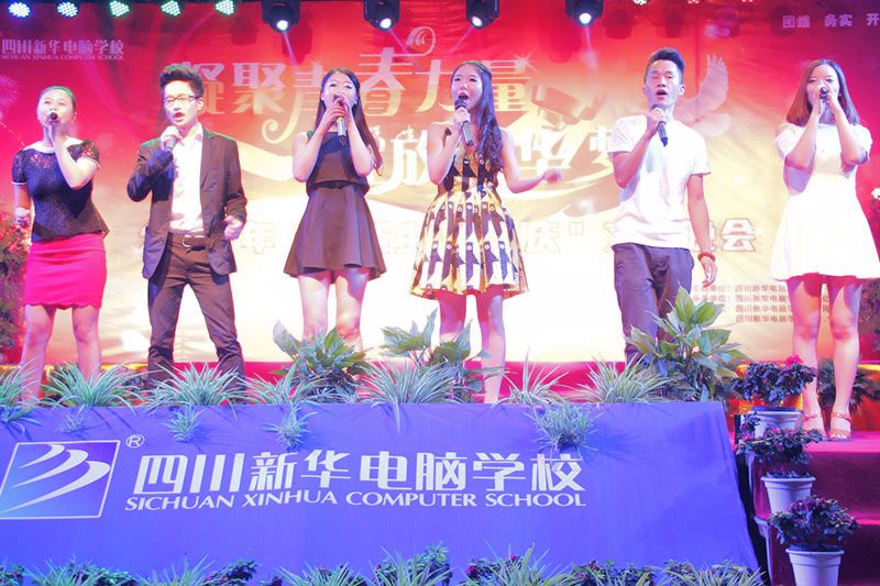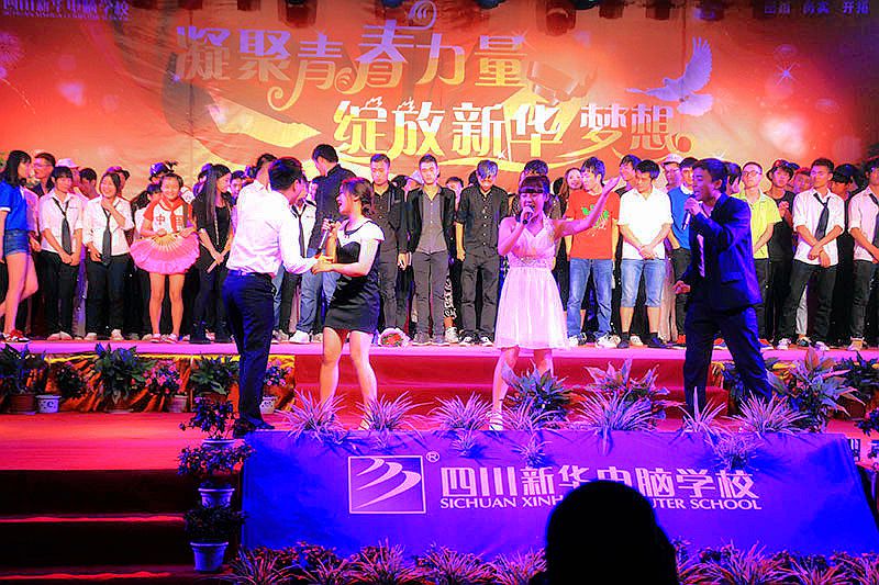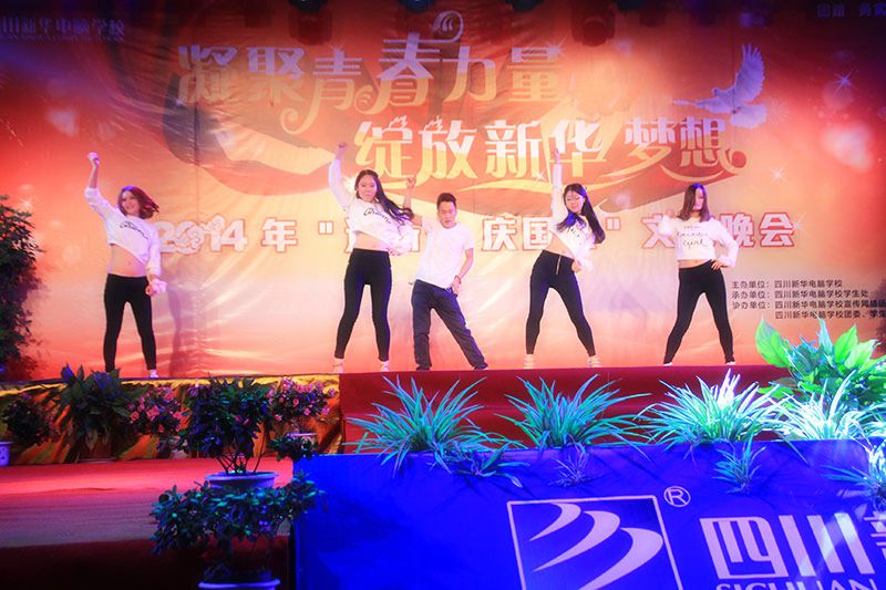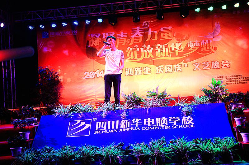 四川新华电脑学院2014年“凝聚青春力量,绽放新华梦想”“庆国庆暨迎新生”文艺晚会随着《相亲相爱》歌曲的响起圆满落下帷幕。