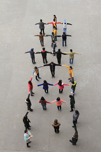 由14级艺术二班同学组成的“青”字