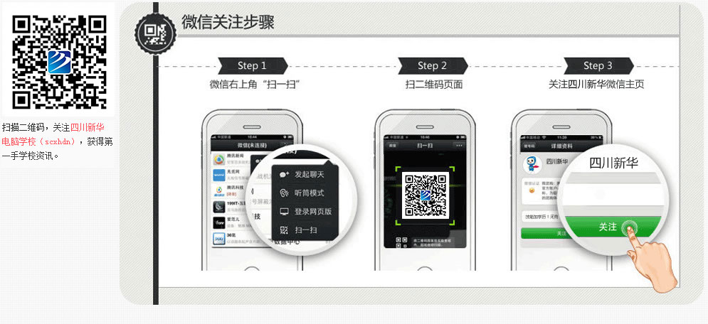 想知道四川新华电脑学院有哪些被奉为IT牛人的学长学姐吗?想知道本校师哥师姐都有哪些让人崇拜的事迹吗?想知道学校有哪些师资强、就业好的热门专业吗?想知道学校都有哪些值得吐槽的青春影事吗?看着照片中美丽的校园,帅气的师兄,漂亮的师姐,顶尖的师资,热门的专业,高薪的就业,还有那令人艳羡的IT大学独有的设计神韵,你会不会对中国优秀设计师摇篮--四川新华电脑学院倾心不已呢?考不上大学又怎么样?中考成绩不佳又有什么?趁着青春年少,赶快做出明智的选择吧!就业拿高薪,圆梦圆未来,2014,我们在新华等你!